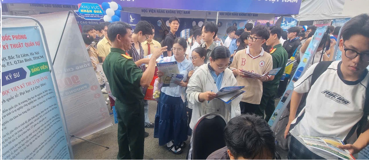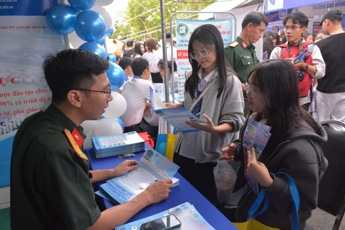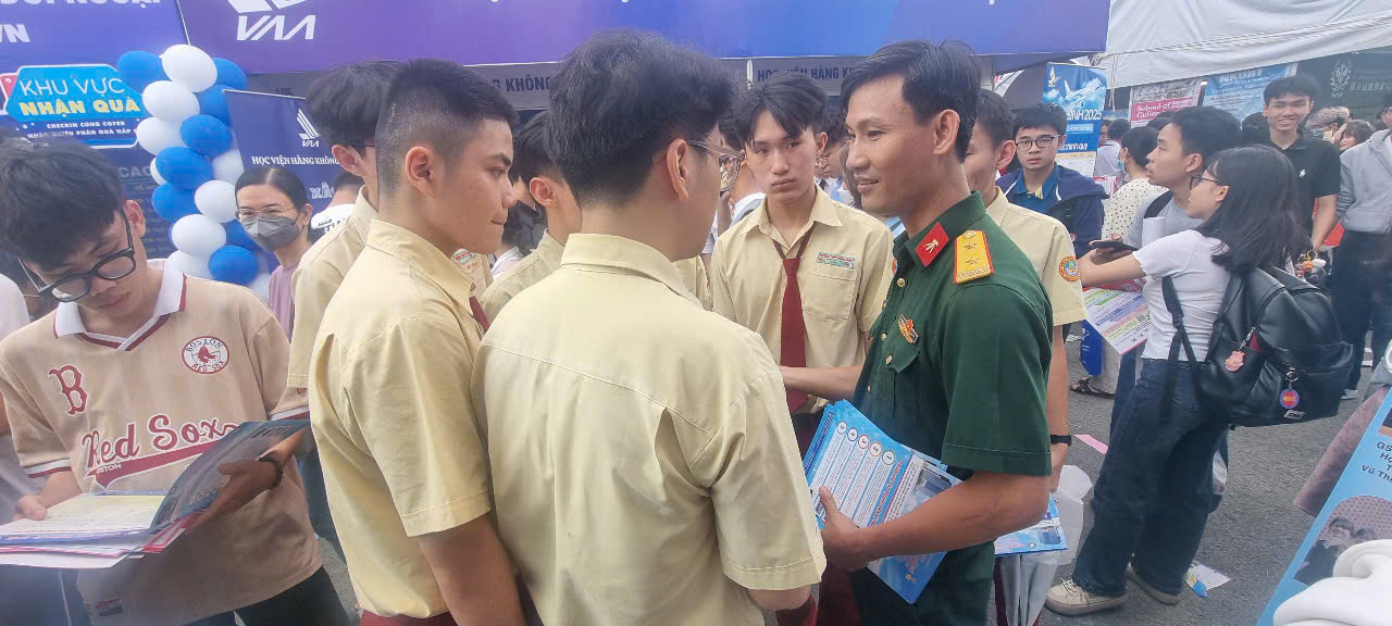 Học viện Kỹ thuật quân sự tư vấn về thông tin tuyển sinh năm 2025 cho các em học sinh – Ảnh: Đại diện phía Nam/HVKTQS